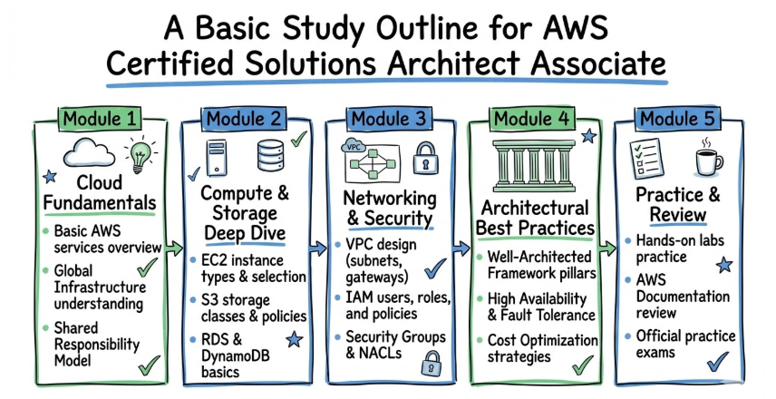 - Core services such as IAM, VPC, and S3 are revisited for clarity.