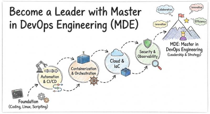 The Master in DevOps Engineering (MDE) is an extensive educational program that covers every phase of the software delivery lifecycle. It is intended to take a professional beyond basic automation and into the realm of architectural design and system orchestration.